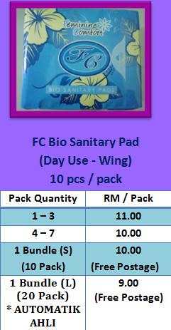 - Untuk aliran banyak gunakan pad bungkusan merah kerana ia panjang 35cm.